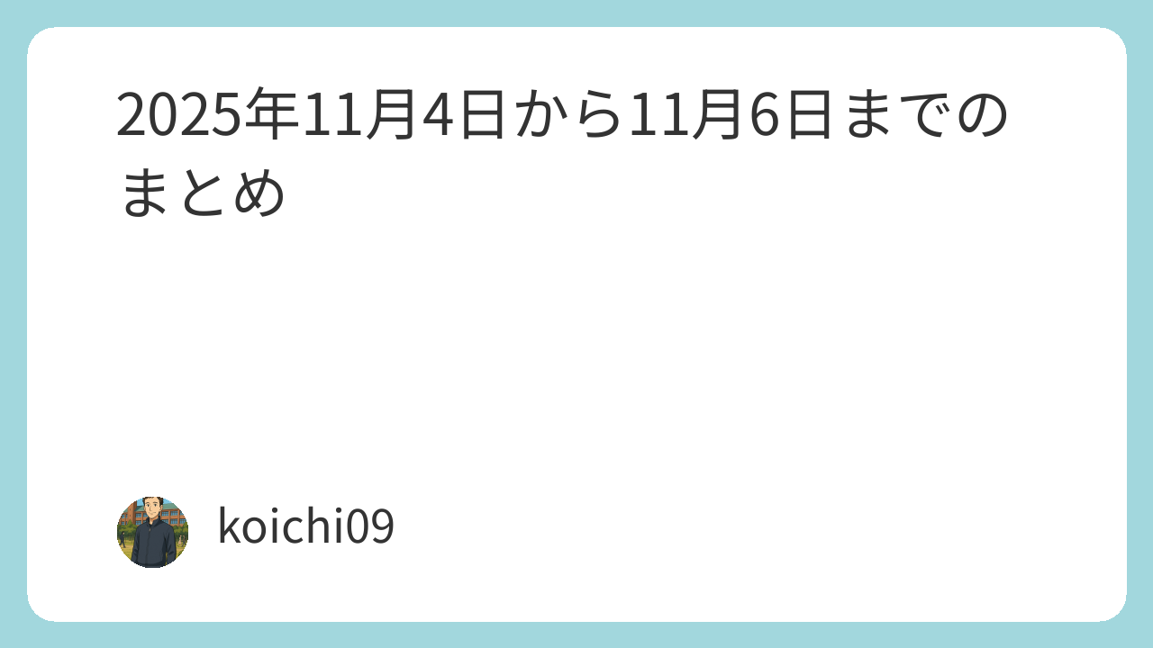 2025年11月4日から11月6日までのまとめ